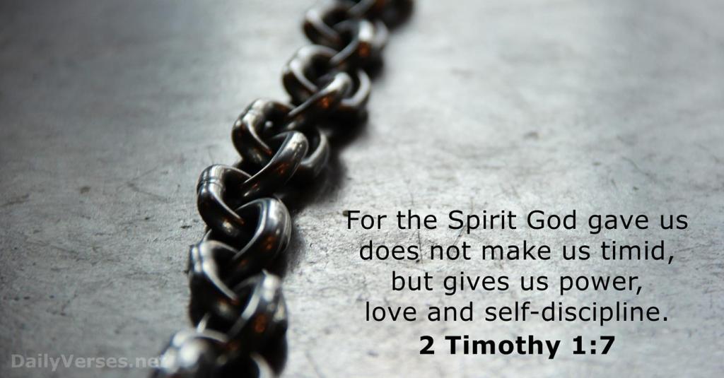 “For God has not given us a spirit of fear and timidity, but of power, love, and a sound mind” (2 Timothy 1:7, NLT).