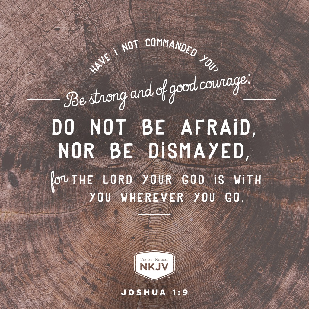 “Have I not commanded you? Be strong and of good courage; do not be afraid, nor be dismayed, for the LORD your God is with you wherever you go” (Joshua 1:9, NKJV).